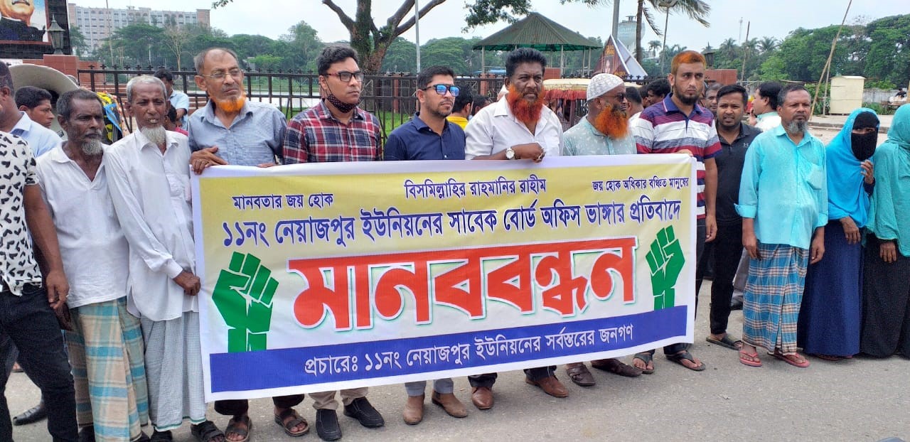 নোয়াখালী প্রতিনিধি।। নোয়াখালীর সদর উপজেলার ১১নং নেয়াজপুর ইউনিয়নের বোর্ড অফিস ভাঙ্গার প্রতিবাদে এলাকাবাসী মানববন্ধন করেছে। সোমবার (২৫ এপ্রিল) বেলা ১১টার