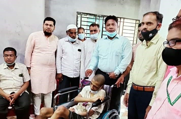 তিতাসে প্রতিবন্ধীদের মাঝে হুইল চেয়ার ও কেইচ বিতরণ