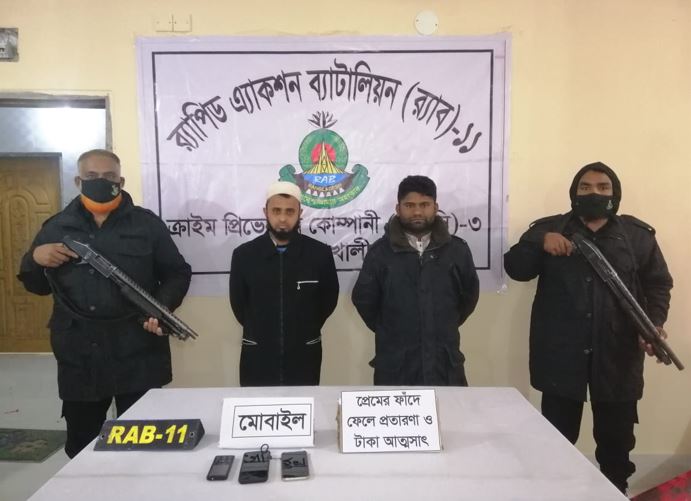 নোয়াখালী প্রতিনিধি।। নোয়াখালীতে সুন্দরী নারী সেজে প্রবাসীকে প্রেমের ফাঁদে ফেলে অর্থ আদায়ের অভিযোগে তিন প্রতারককে গ্রেফতার করেছে র্যাপিড ত্র্যাকশন ব্যাটালিয়ন