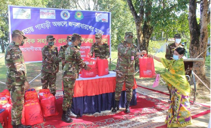 খাগড়াছড়িতে সেনাবাহিনী ও বিদ্যানন্দ ফাউন্ডেশনের মানবিক সহায়তা
