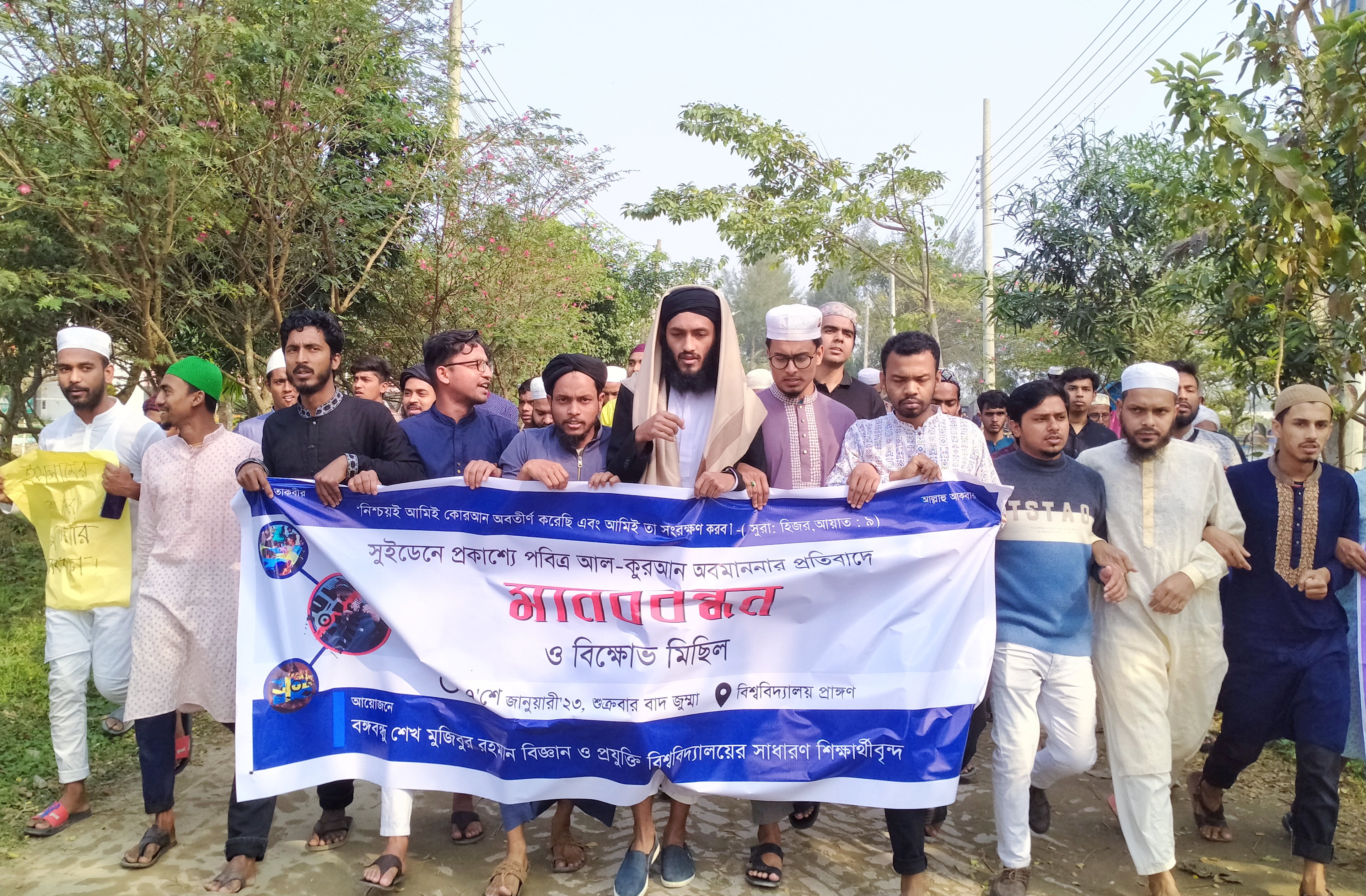 বশেমুরবিপ্রবি প্রতিনিধি।। সুইডেনে প্রকাশ্যে পবিত্র কুরআন অবমাননা করার প্রতিবাদে বঙ্গবন্ধু শেখ মুজিবুর রহমান বিজ্ঞান ও প্রযুক্তি বিশ্ববিদ্যালয়ে মানববন্ধন ও
