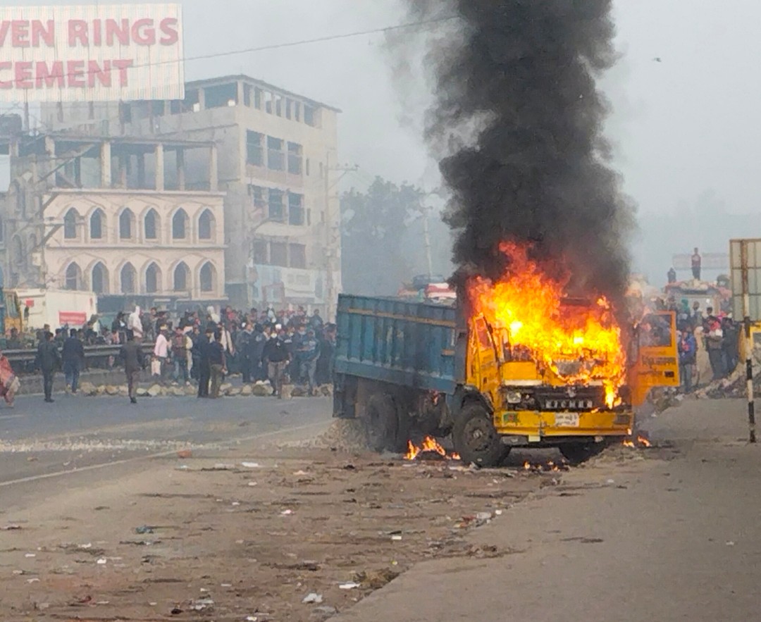 কালিায়াকৈরে ট্রাক-চাপায় নিরাপত্তা কর্মী নিহতর। অবরোধ – শতাধিক যানবাহন ভাংচুর।।