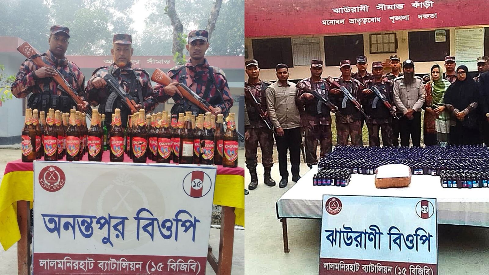 চঞ্চল, লালমনিরহাটের হাতীবান্ধা এবং কুড়িগ্রামের ফুলবাড়ী সীমান্তে ১৫ বিজিবির পৃথক অভিযানে বিপুল পরিমাণ ভারতীয় মাদকদ্রব্য উদ্ধার করা হয়েছে। এর মধ্যে
