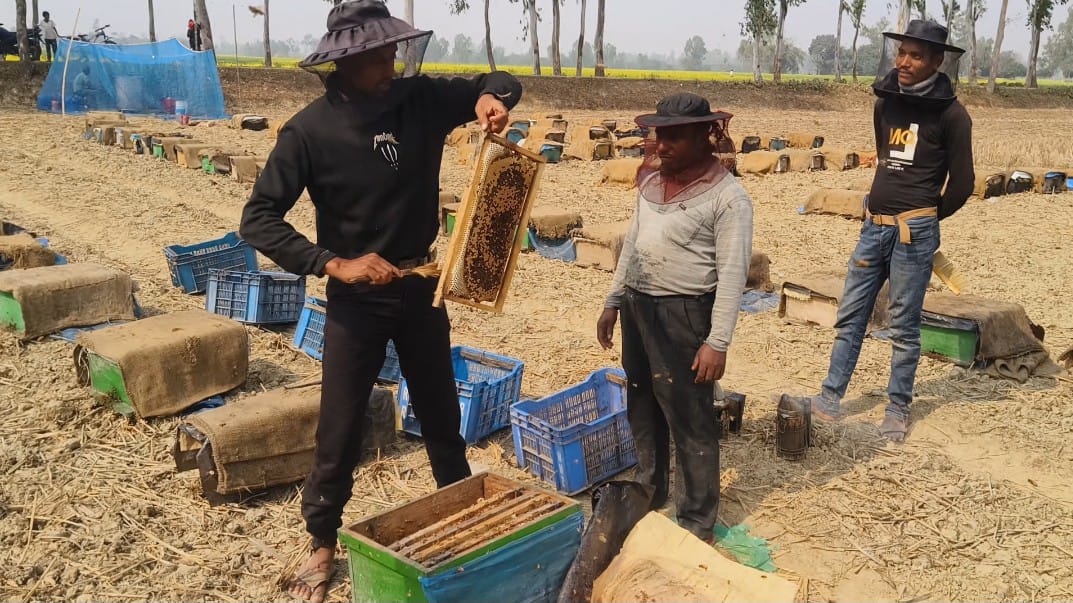 পাঁচবিবিতে সরিষা ফুলের মধু সংগ্রহে ব্যস্ত মৌচাষীরা