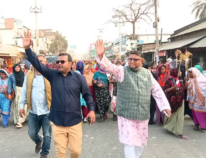 পাঁচবিবিতে ছাত্রনেতা শামীমের নেতৃত্বে ধানের শীষের বিশাল মিছিল