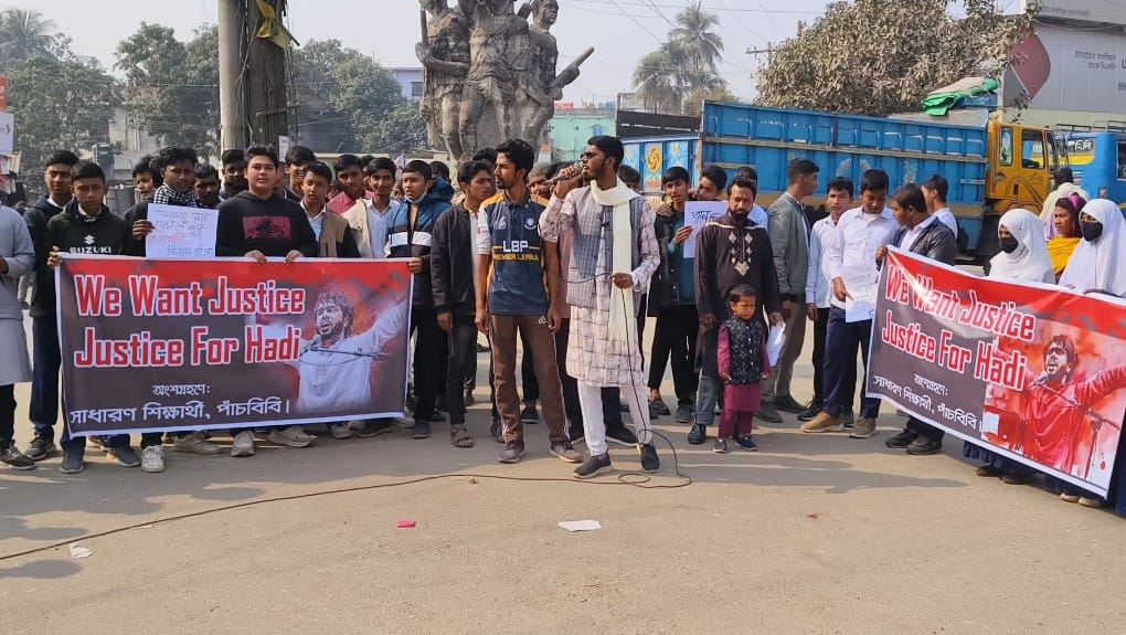 জুলাই যোদ্ধা শরিফ ওসমান হাদিকে হত্যার প্রতিবাদে পাঁচবিবিতে অবস্থান কর্মসূচি