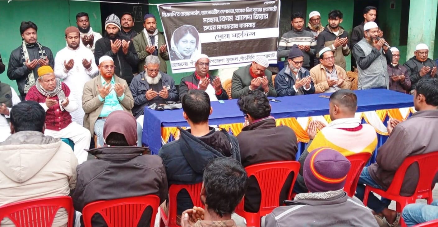 ফারহান ইসলাম হিলি, পাঁচবিবি সংবাদদাতা: জয়পুরহাটের পাঁচবিবিতে বিএনপির চেয়ারপারসন ও সাবেক প্রধানমন্ত্রী দেশনেত্রী বেগম খালেদা জিয়ার রুহের মাগফিরাত কামনায় দোয়া