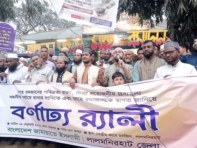 লালমনিরহাটে আসন্ন মাহে রমজান উপলক্ষ্যে জামায়াতের বর্ণাঢ্য র‍্যালি ও সভা অনুষ্ঠিত