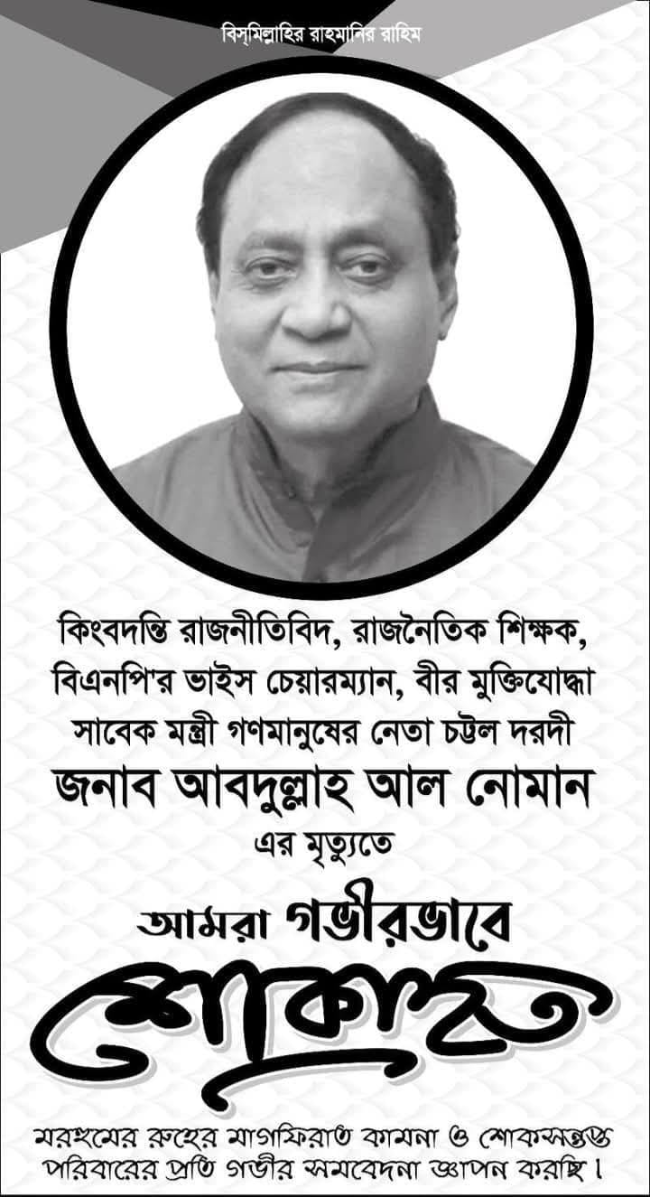আব্দুল আল নোমানের মৃত্যুতে মহানগর বিএনপির শোক