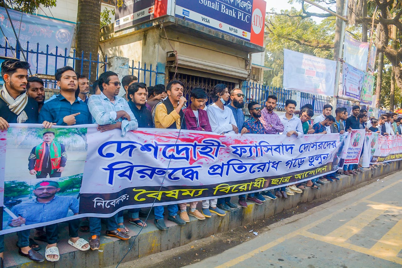 কাস্টমস হাউসে বৈষম্য বিরোধী ছাত্র আন্দোলনের মানববন্ধনে বক্তারা।।