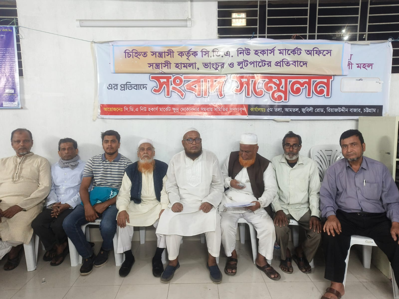 চট্টগ্রামে সিডিএ নিউ হকার্স মার্কেট সমিতির কার্যালয়ে হামলার প্রতিবাদে সংবাদ সম্মেলন।।