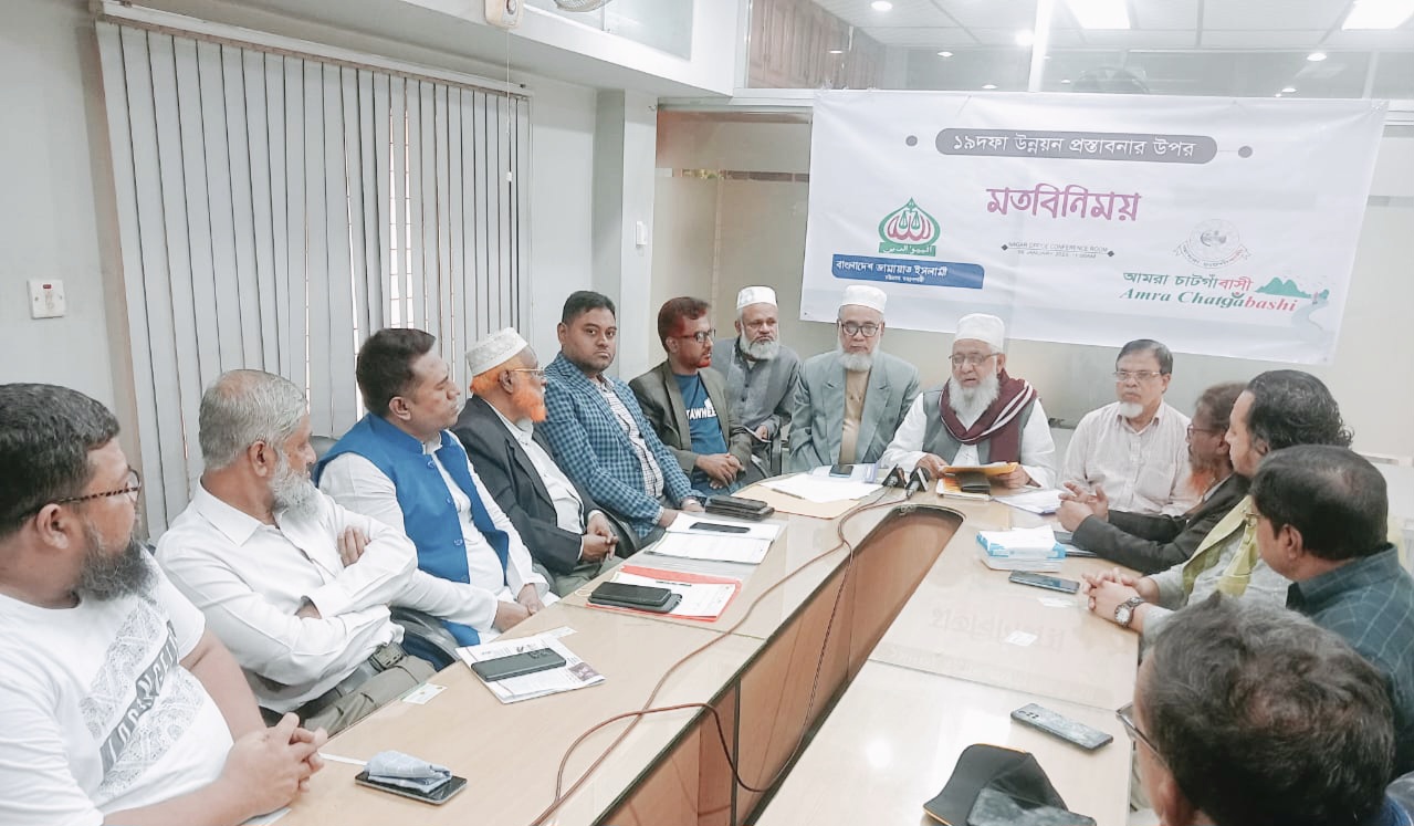 ইসমাইল ইমন চট্টগ্রাম জেলা প্রতিনিধি।। আমরা চাটগাঁবাসীর ১৯ দফা উন্নয়ন প্রস্তাবনার উপর জামায়াতের নগর আমীর এবং নির্বাহী