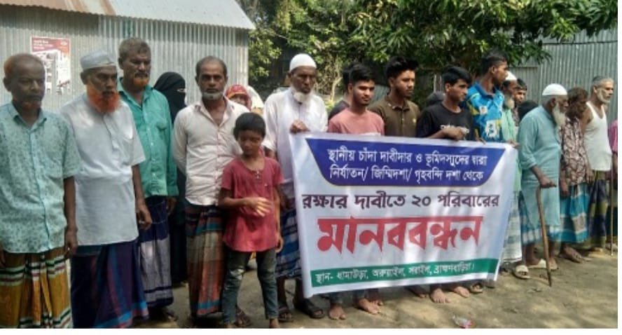 সরাইলে ভূমিদস্যুদের তান্ডব থেকে রক্ষা পেতে মানব বন্ধব।।