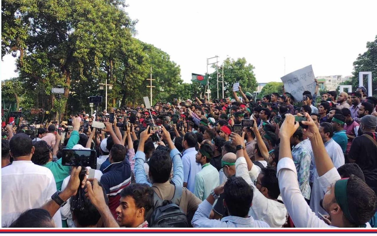 রাষ্ট্রপতি মো. সাহাবুদ্দিন চুপ্পুর পদত্যাগের দাবিতে গণজমায়েত করেছে বৈষম্যবিরোধী ছাত্র আন্দোলনকারী শিক্ষার্থীরা।।