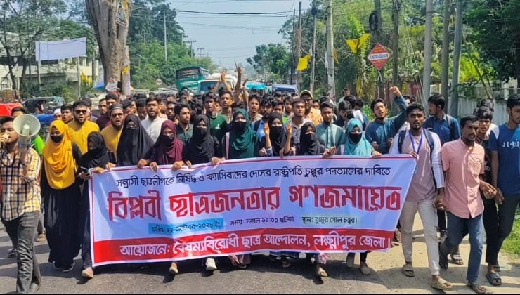 ছাত্রলীগ নিষিদ্ধ ও রাষ্ট্রপতির পদত্যাগের দাবিতে লক্ষ্মীপুরে বিক্ষোভ ও গণজমায়েত।।