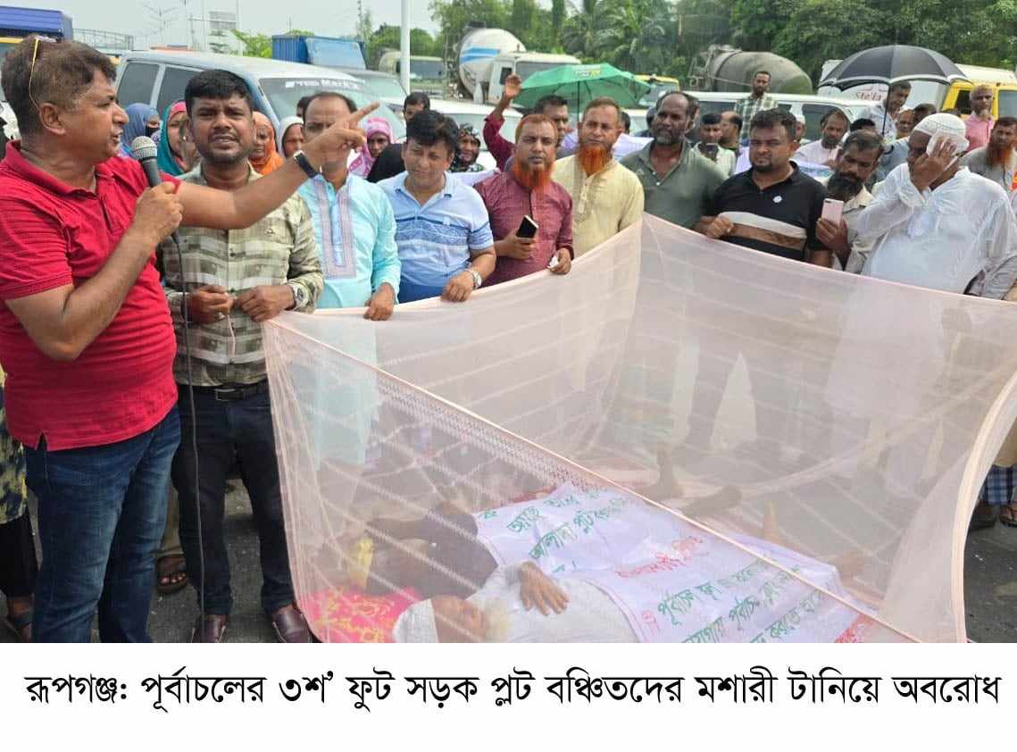 পূর্বাচল উপশহরের বঞ্চিত আদিবাসিন্দা ও ক্ষতিগ্রস্থদের প্লট বরাদ্দের দাবীতে ৩শ’ ফুট সড়কে শুয়ে অবরোধ -বিক্ষোভ।।
