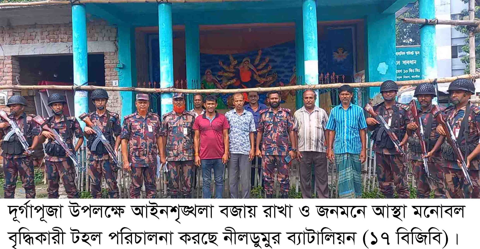 দুর্গাপূজায় আইনশৃঙ্খলা বজায় রাখা ও জনমনে মনোবল বৃদ্ধিতে নীলডুমুর ১৭ বিজিবি ব্যাটালিয়নের নিয়মিত টহল।।