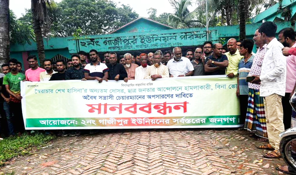 শ্রীপুরে গাজীপুর ইউনিয়ন পরিষদের সন্ত্রাসী চেয়ারম্যান অপসারণের দাবিতে মানববন্ধন।।