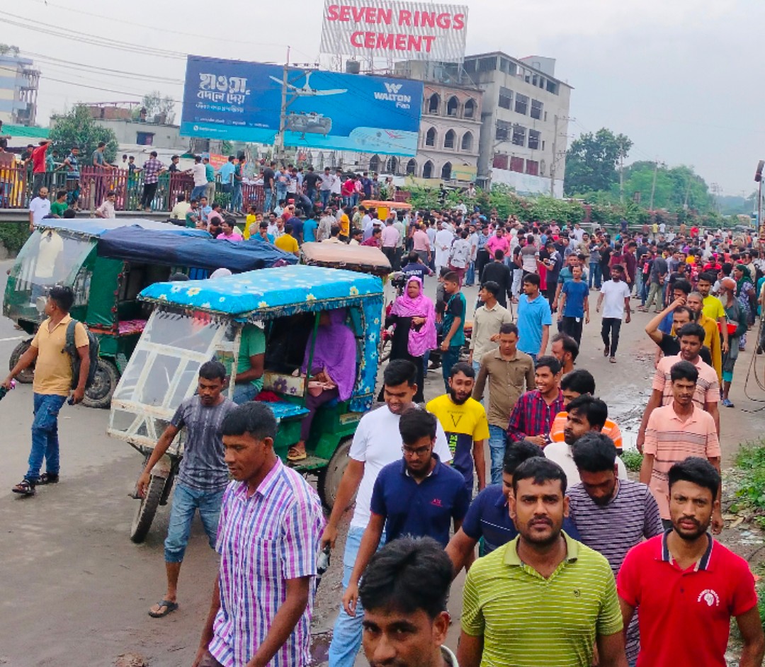 গাজীপুরে বকেয়া বেতনের দাবীতে শ্রমিকদের ঢাকা-টাঙ্গাইল মহাসড়ক ৪ ঘন্টা অবরোধ।।