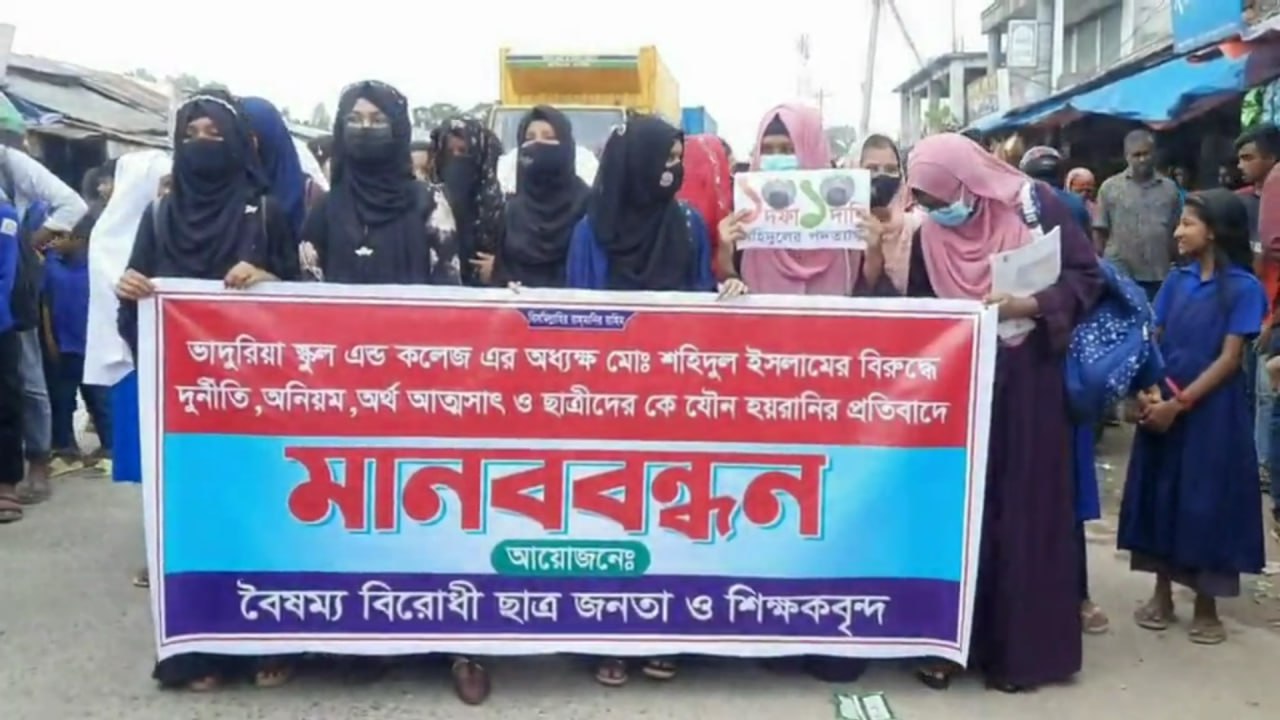 দিনাজপুরের নবাবগঞ্জ ভাদুরিয়া স্কুল এন্ড কলেজের অধ্যক্ষের পদত্যাগের দাবিতে শিক্ষার্থীদের বিক্ষোভ মিছিল।।
