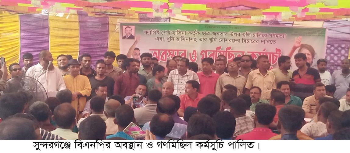 সুন্দরগঞ্জে বিএনপি’র অবস্থান ও গণমিছিল কর্মসূচি।।