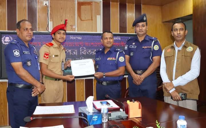 ভোলা জেলায় ট্রাফিক ম্যানেজমেন্টে অংশগ্রহণকারী শিক্ষার্থীদের সনদপত্র বিতরণ।।