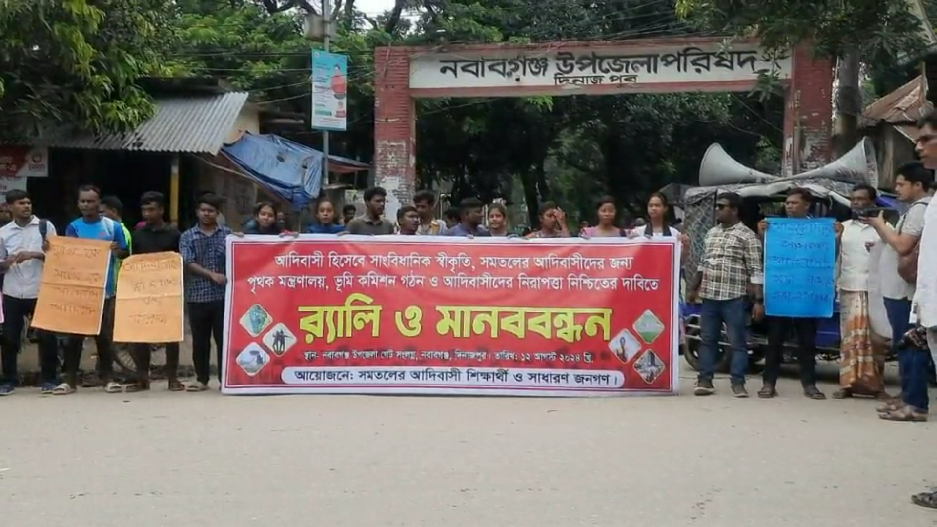 দিনাজপুরের নবাবগঞ্জে বিভিন্ন দাবি-দাওয়া আদায়ে আদিবাদিবসী শিক্ষার্থীদের র্যালী ও মানববন্ধন।।