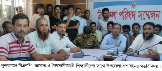 সুন্দরগঞ্জে বিএনপি জামাত ও শিক্ষার্থীদের সাথে প্রশাসনের মতবিনিময়।।