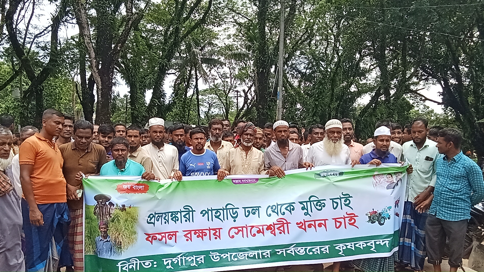 ফসল রক্ষায় সোমেশ্বরী নদী খননের দাবিতে কৃষকদের অবস্থান কর্মসূচি।।
