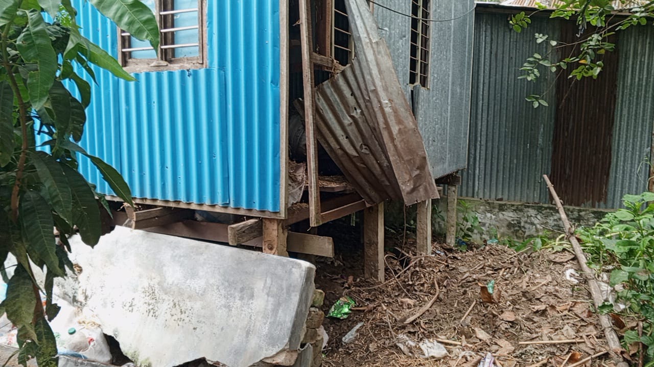শরীয়তপুরে বোমা বিস্ফোরণে উরে গেলো ঘরের টিন ও বেড়া।।
