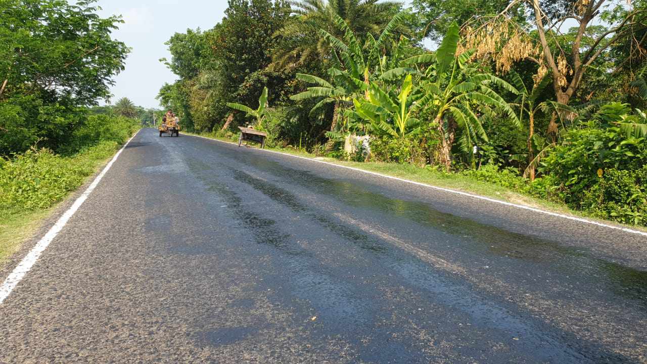 তীব্র দাবদাহে গলে যাচ্ছে শরীয়তপুর-চাঁদপুর সড়কের পিচ।।