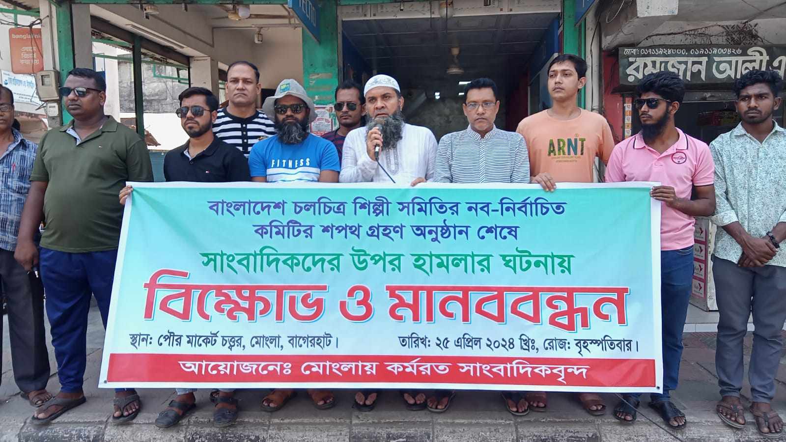 সাংবাদিকদের উপর হামলার প্রতিবাদে মোংলায় মানববন্ধন।।
