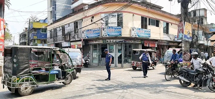 ঝালকাঠিতে তীব্র তাপদাহের মধ্যে উত্তপ্ত সড়ক ছাড়ছেন না ট্রাফিক পুলিশ।।