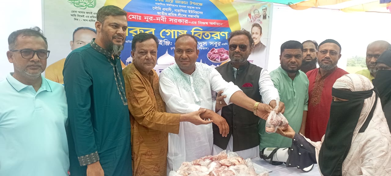 তিতাসে সৌদি প্রবাসী নূরনবী সরকারের নিজস্ব অর্থায়নে সাধারণ মানুষের মধ্যে গরুর গোস্ত বিতরণ।।