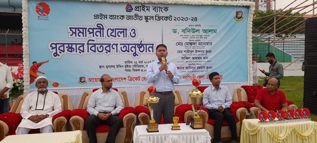 অরবিন্দ রায় স্টাফ রিপোর্টার।। নরসিংদী প্রাইম ব্যাংক জাতীয় ক্রিকেট প্রতিযোগিতার এর সমাপনী খেলা ও পুরস্কার বিতরণ অনুষ্ঠান বৃহস্পতিবার নরসিংদী মুছলেহ