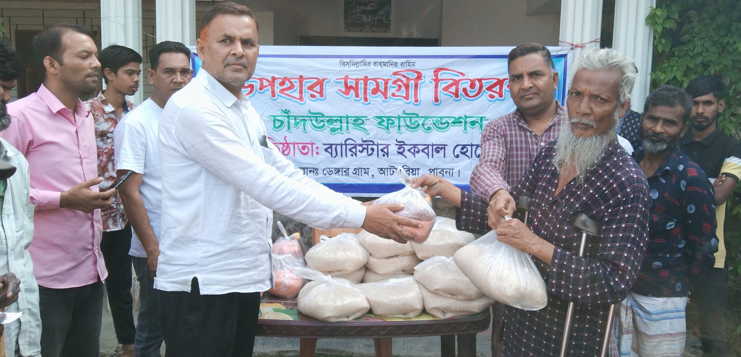 পাবনা প্রতিনিধি।। পাবনার আটঘরিয়া উপজেলার ডেঙ্গাগ্রামে চাঁদউল্লাহ ফাউন্ডেশনের প্রতিষ্ঠাতা ব্যারিস্টার ইকবাল হোসেন বাদশার নিজ অর্থায়নে প্রতি বছরের ন্যায় এবছরও ১০০