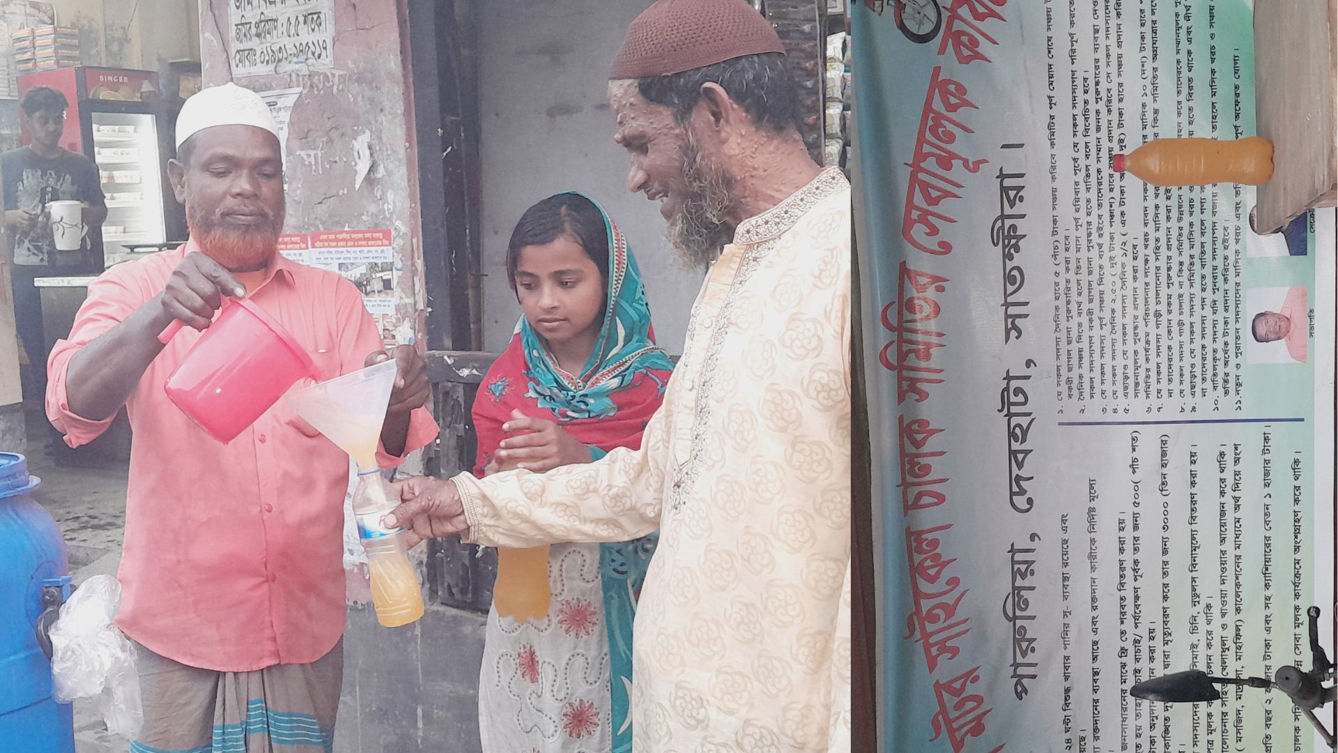 দেবহাটা উপজেলা প্রতিনিধি।। রমজান উপলক্ষে পারুলিয়ার ভাড়ায় চালিত মোটরসাইকেল চালক সমিতির উদ্যোগে এক মাস ব্যাপি রোজাদার ব্যক্তিদের মাঝে ঠান্ডা সরবত