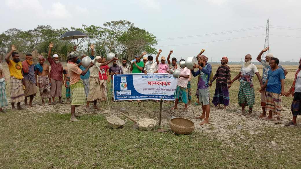 তালতলীতে মরা খালে পানি ঢেলে ব্যতিক্রমী মানববন্ধন।।