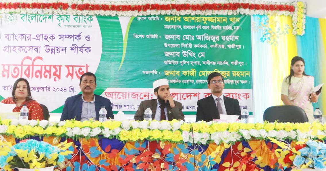মোঃ রায়হান মাহামুদ।। গাজীপুরের কালীগঞ্জ উপজেলা কৃষি ব্যাংকের গ্রাহক সম্পর্ক ও গ্রাহকসেবা উন্নয়ন শীর্ষক মতবিনিময় সভা অনুষ্ঠিত হয়েছে। বৃহস্পতিবার সকালে