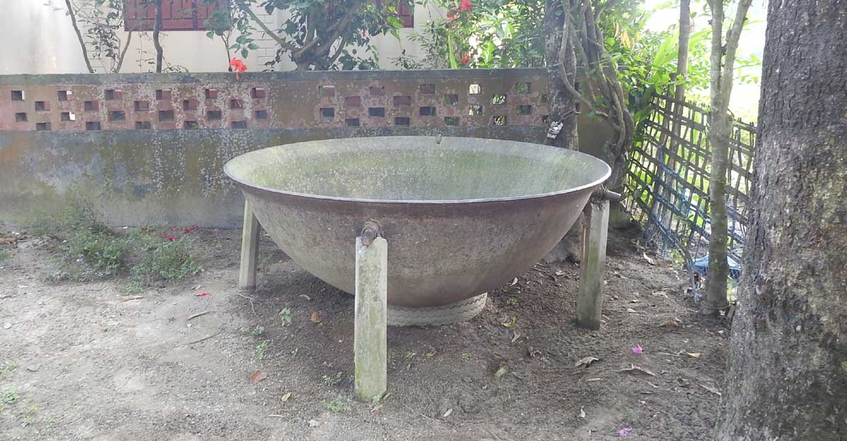 নীলফামারী থেকে সাদ্দাম আলী।। বাড়িতে হাতি নেই অথচ হাতির জন্য রয়েছে মস্ত বড় একটা কড়াই। সেটাও আবার শিকলে বাঁধা। দাবি