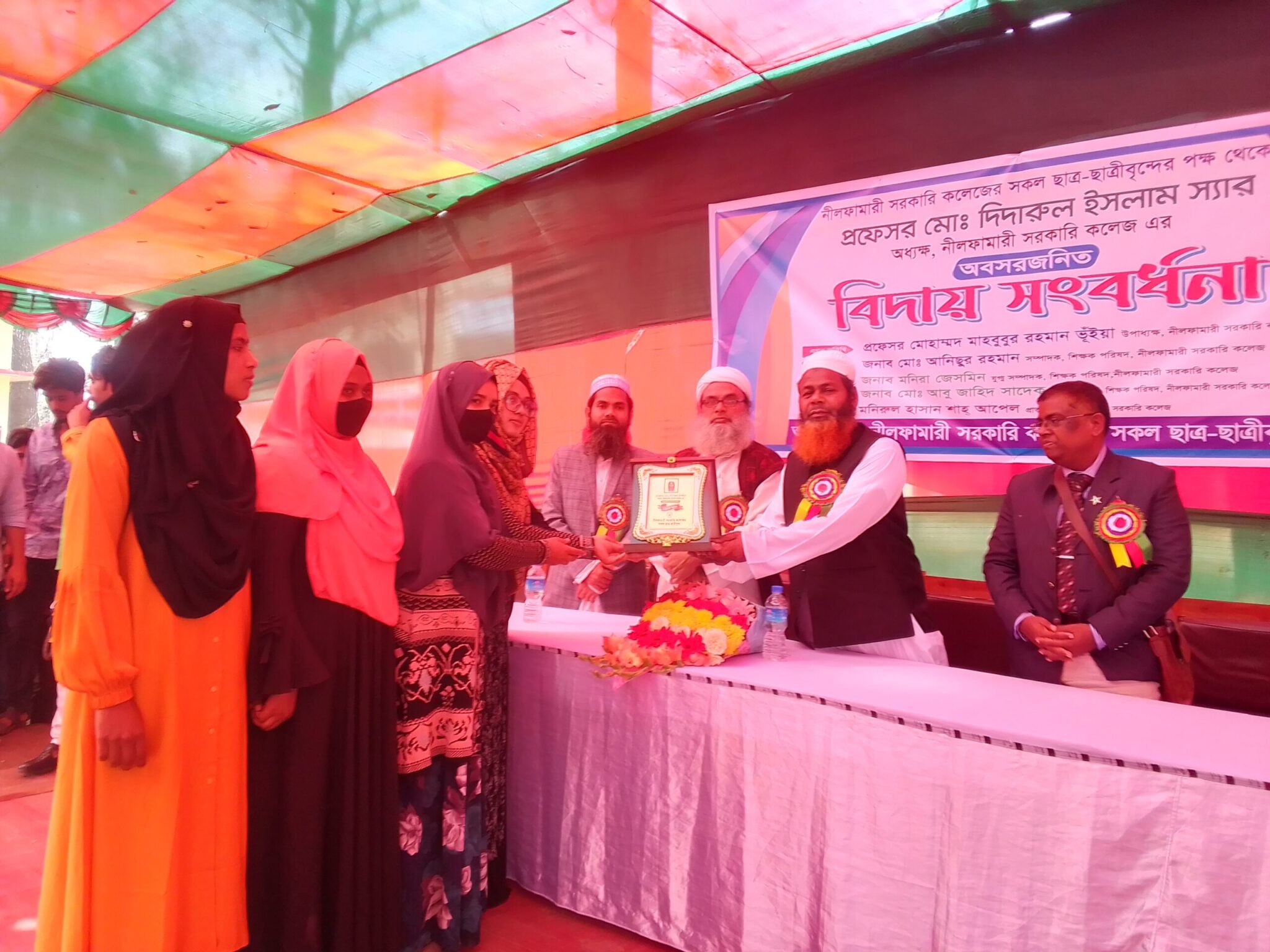নীলফামারী থেকে সাদ্দাম আলী।। রংপুর বিভাগের শ্রেষ্ঠ অধ্যক্ষ ও নীলফামারী সরকারি কলেজের অধ্যক্ষ প্রফেসর মো: দিদারুল ইসলাম এর বিদায়ী সংবর্ধনা