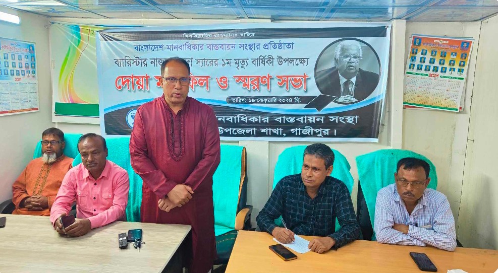 মো.ইমরান হোসেন স্টাফ রিপোর্টার।। গাজীপুরের কালিয়াকৈরে বাংলাদেশ মানবাধিকার বাস্তবায়ন সংস্থার প্রতিষ্ঠাতা ব্যারিষ্টার নাজমুল হুদার ১ম মৃত্যু বার্ষিকী উপলক্ষে দোয়া মাহফিল