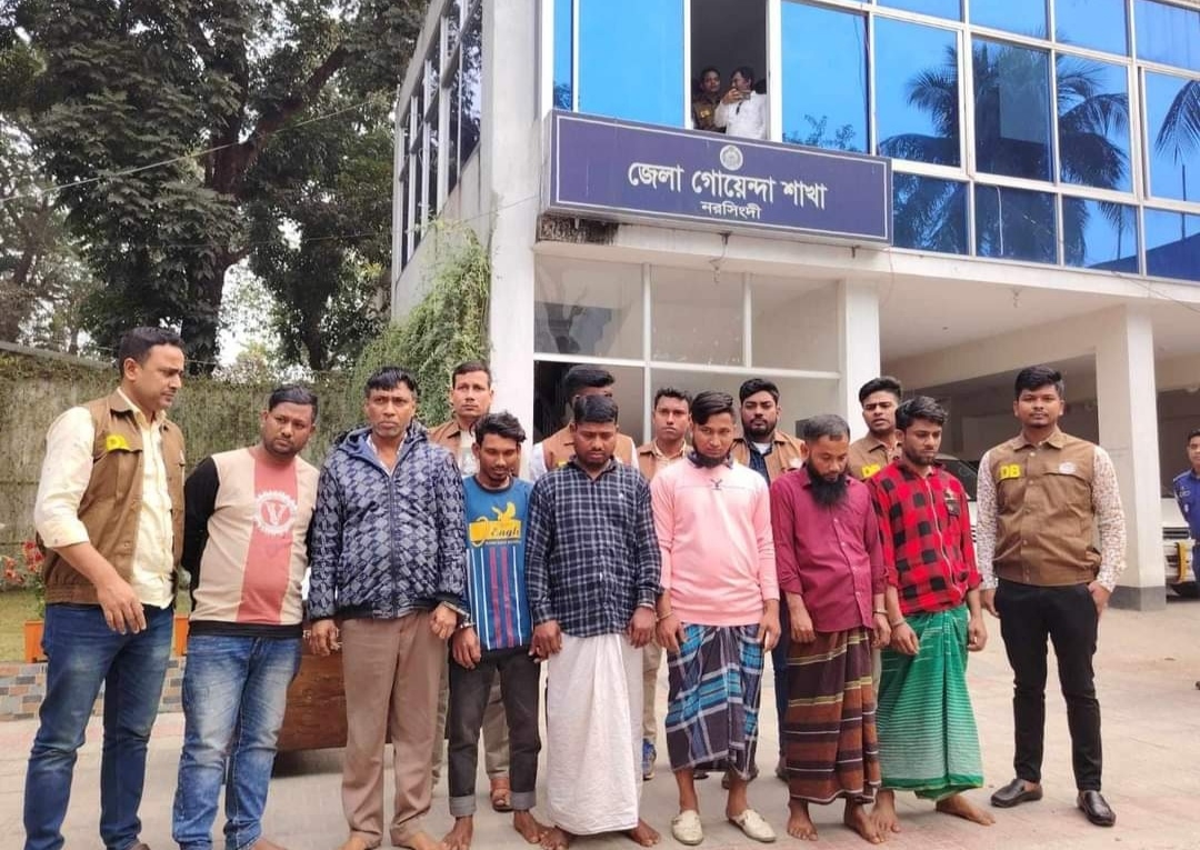 নরসিংদীতে অস্ত্র মালামাল সহ ৭ ডাকাত গ্রেপ্তার।।