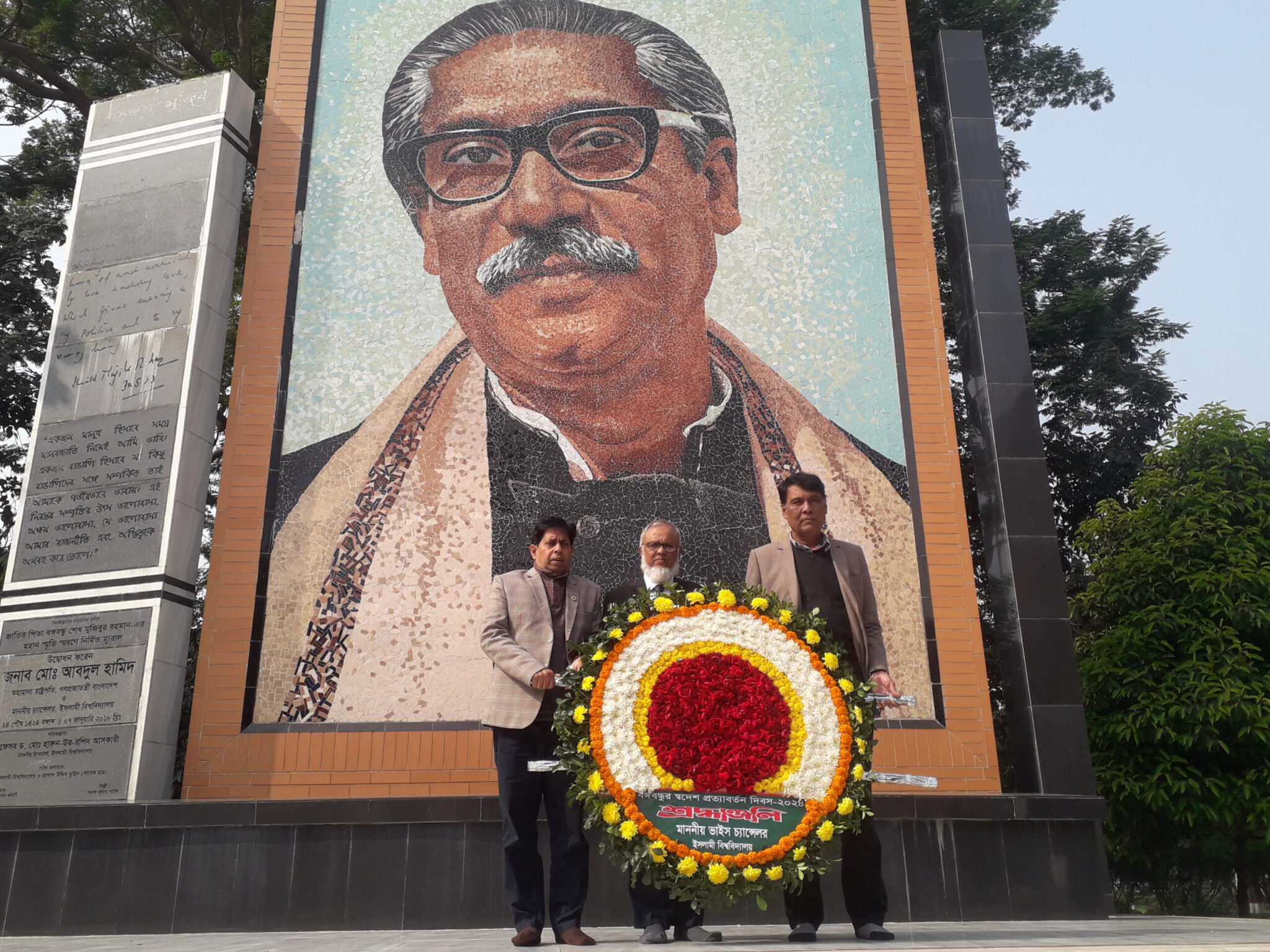 ইবি প্রতিনিধি।। ইসলামী বিশ্ববিদ্যালয়ে -ইবি-যথাযোগ্য মর্যাদায় বঙ্গবন্ধুর ঐতিহাসিক স্বদেশ প্রত্যাবর্তন দিবস পালিত হয়েছে। দিবসটি উপলক্ষে বঙ্গবন্ধুর প্রতিকৃতি ‘মৃত্যুঞ্জয়ী মুজিব’ ম্যুরালে