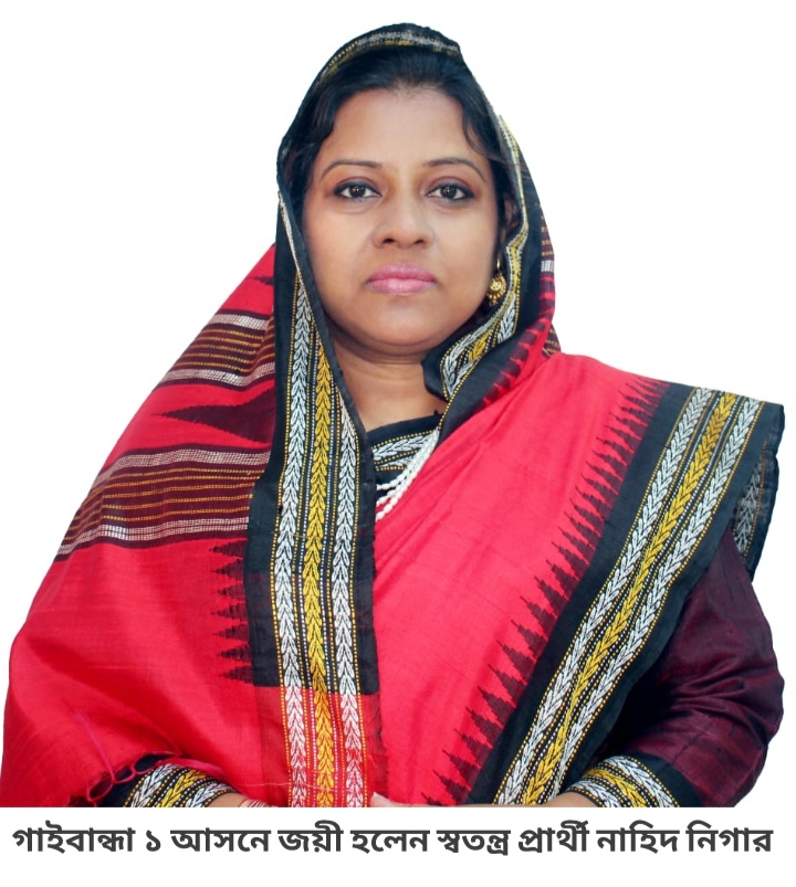 সুন্দরগঞ্জ আসনে এমপি হলেন স্বতন্ত্র প্রার্থী আব্দুল্লাহ নাহিদ নিগার।।