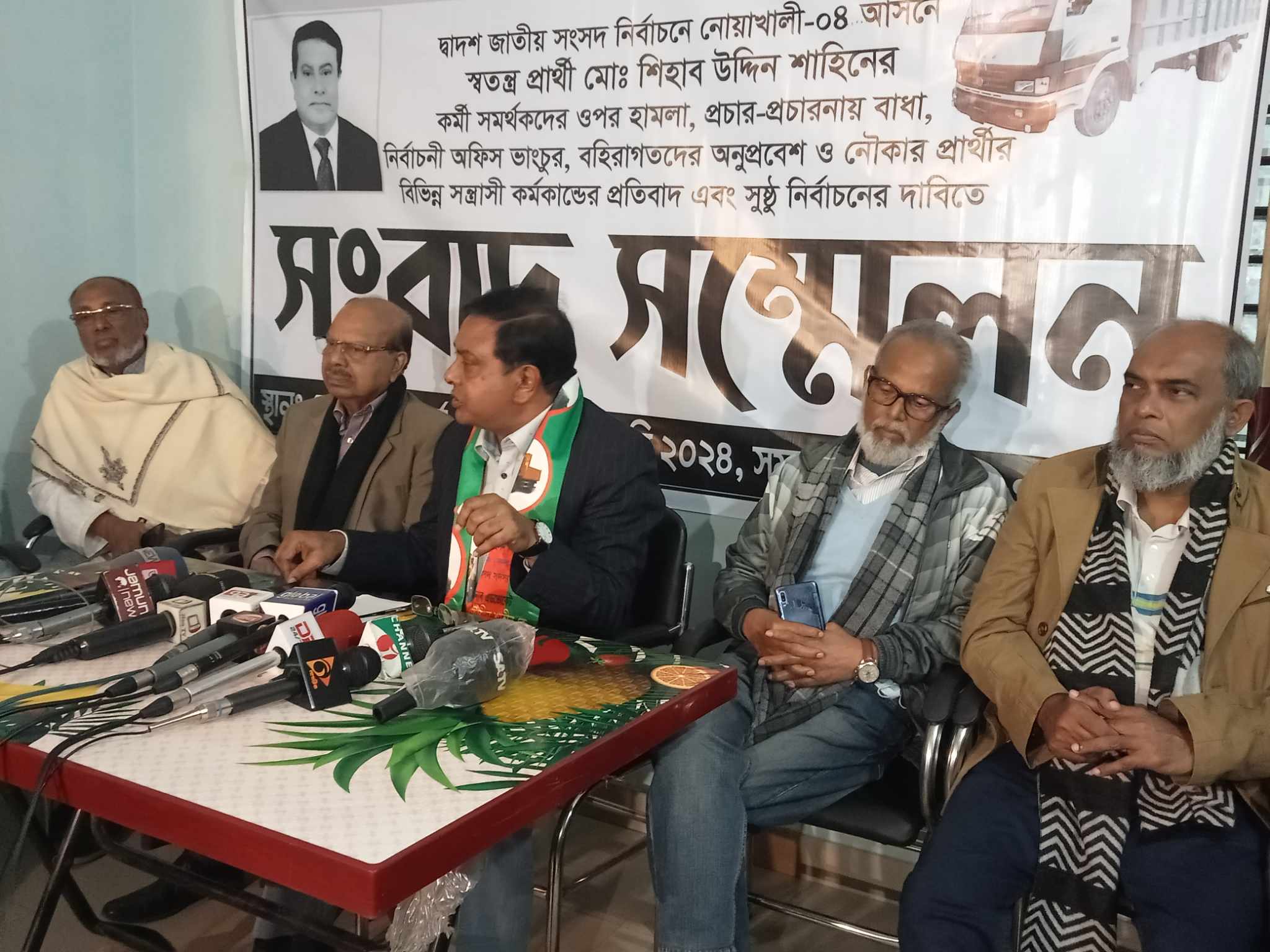 নোয়াখালী -৪ স্বতন্ত্র প্রার্থীর প্রচার-প্রচারনায় বাধা ও হামলার প্রতিবাদে সংবাদ সম্মেলন।।