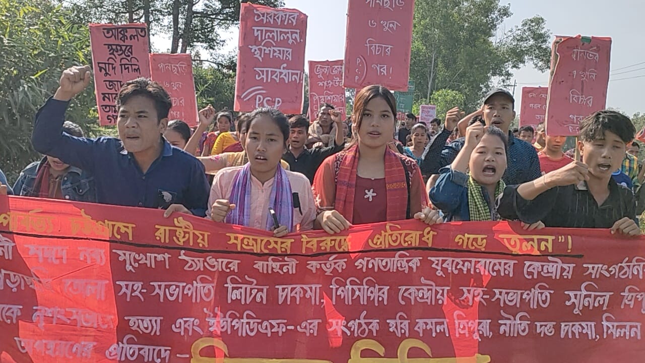 পানছড়িতে বর্বোরচিত হত্যার প্রতিবাদে চার সংগঠনের বিক্ষোভ।।