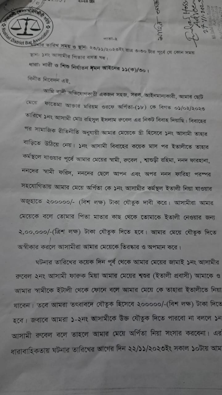 নোয়াখালী প্রতিনিধি।। নোয়াখালীর চাটখিলে সিংবাহুড়া গ্রামে এক গৃহবধুকে যৌতুকের জন্য পিটিয়ে হত্যার অভিযোগ উঠেছে। গত ২২ নভেম্বর দিনগত রাতে পুলিশ