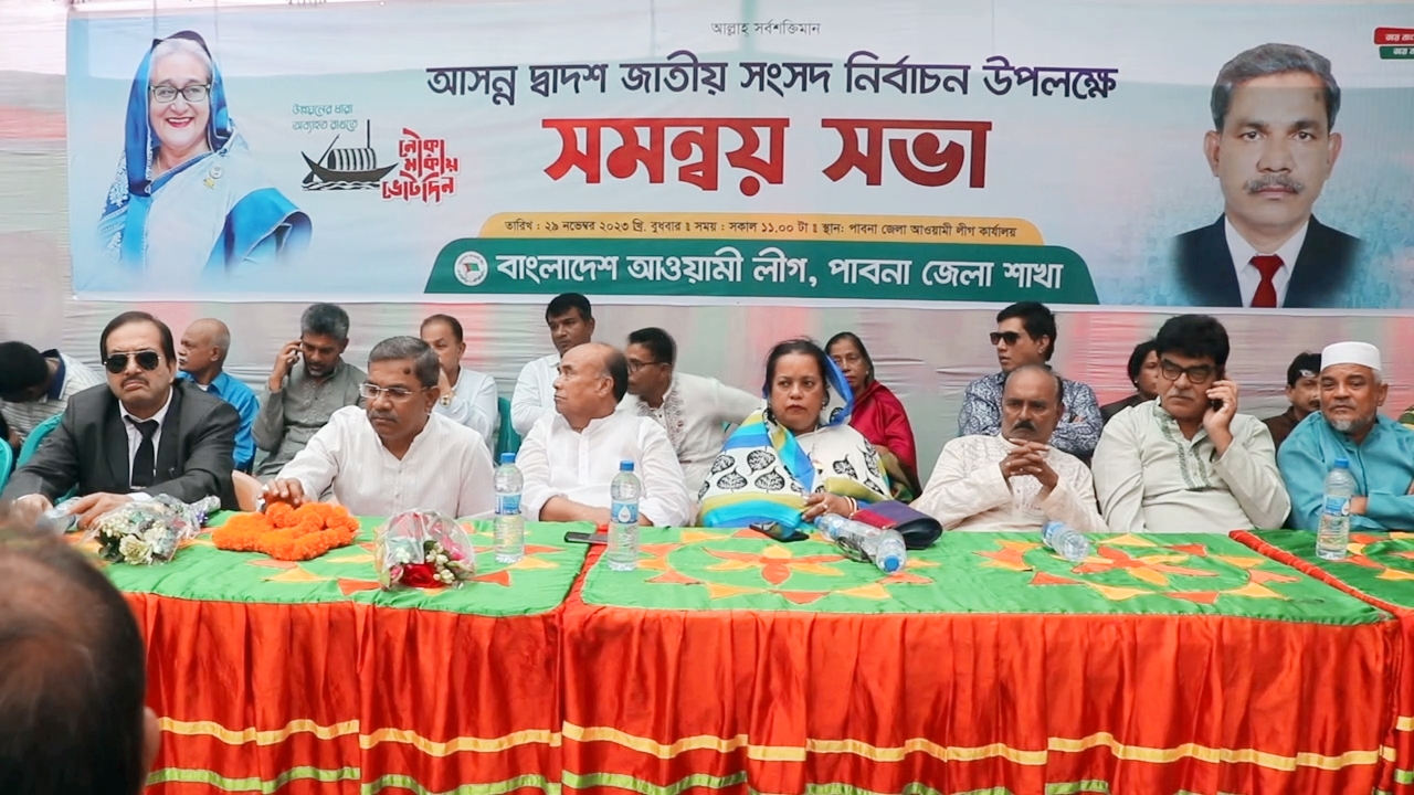 পাবনা প্রিতিনিধি।। আসন্ন দ্বাদশ জাতীয় সংসদ নির্বাচন উপলক্ষে পাবনা জেলা আওয়ামী লীগের সমন্বয় সভা অনুষ্ঠিত হয়েছে। বুধবার -২৯নভেম্বর- দুপুরে জেলা