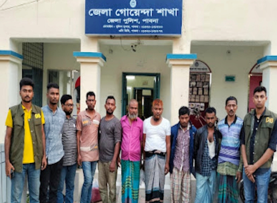 পাবনায় আন্তজেলা ডাকাত চক্রের ১০ সদস্য গ্রেপ্তার।।
